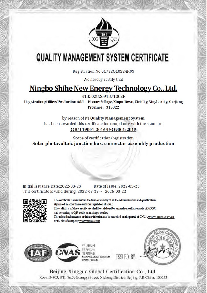 質(zhì)量管理體系認證證書(shū)